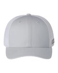 Fabric 100% cotton twill front panels and bill (Solids), 100% poly mesh back panels; 65/35 polyester/cotton twill front panels and bill (Heather Grey)